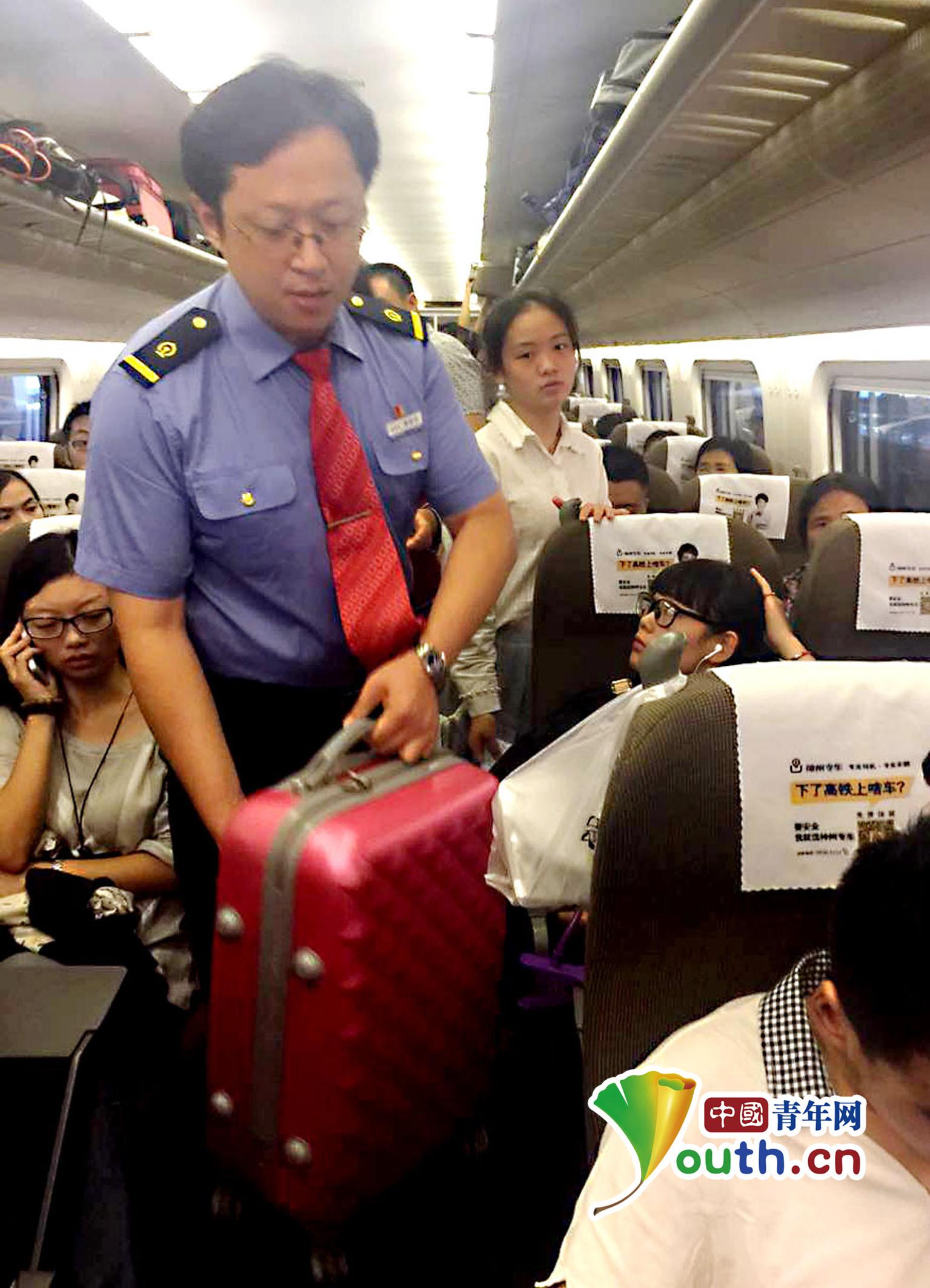魏国庆帮助上车旅客拎大件行李。中国青年网通讯员苏杭摄