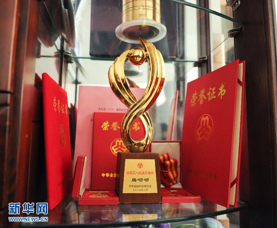 图为在屠呦呦家中柜子里摆放的部分个人获得的荣誉证书和奖杯(10月6日摄)。新华社记者李贺摄