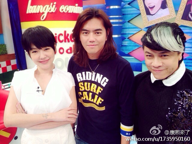 2009年1月,《康熙来了》五周年庆典,两位主持人和节目制作人B2(中)一起合影。