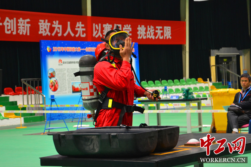 正压呼吸器佩戴 中工网记者 秦笑语摄