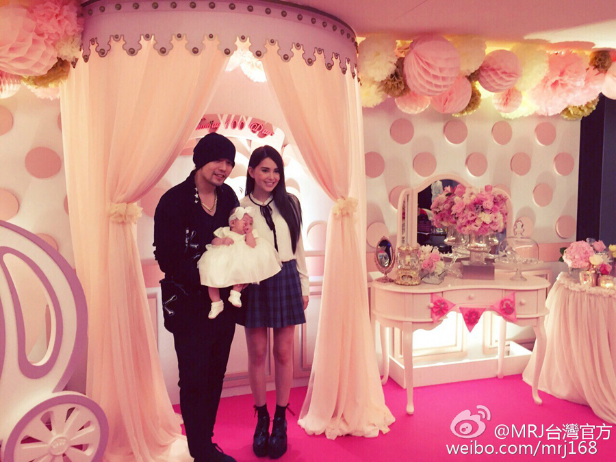 11月5日,周杰伦通过名为“MRJ台湾官方”的微博账号,晒出与昆凌为爱女举办百日派对的照片,还留言称,“谢谢各位亲朋好友来参加Hathaway的百日宴,尤其看到外婆很开心,抱着她的曾孙,让我想到她年轻时的照片,哈哈”。照片中,周杰伦将爱女抱在怀里,昆凌则站在对面,亲吻女儿头顶,更有两人站在一起,抱着女儿合影的场景。
