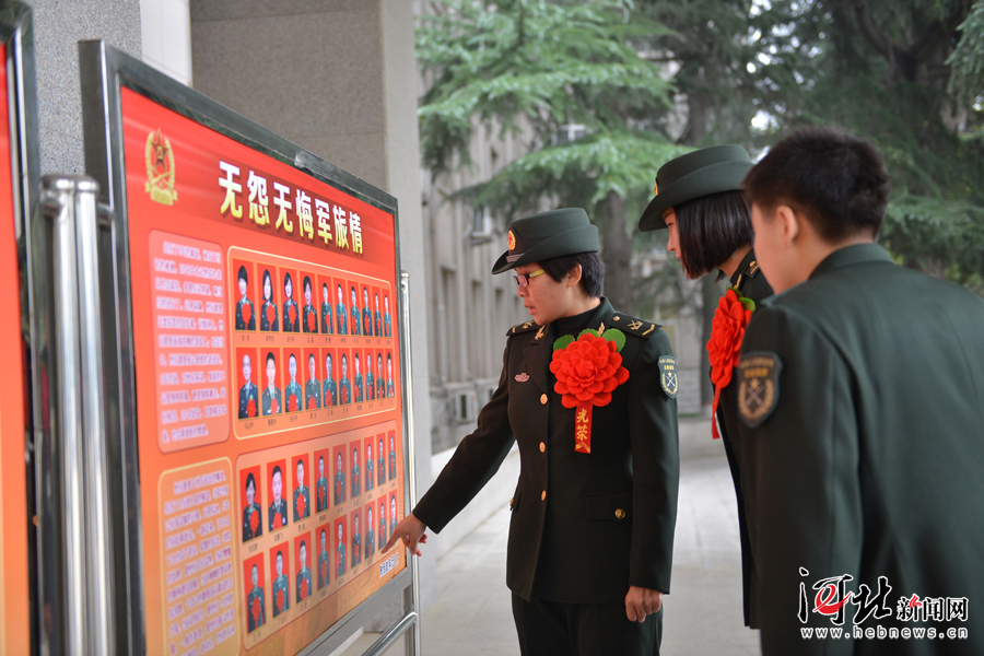 从礼堂出来后,在办公楼前吕晶和战友看着楼前退伍人员公示名单。