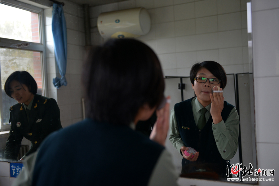 每天上岗前,吕晶都要为自己稍稍画个淡妆,用最好的形象迎接一天的工作。