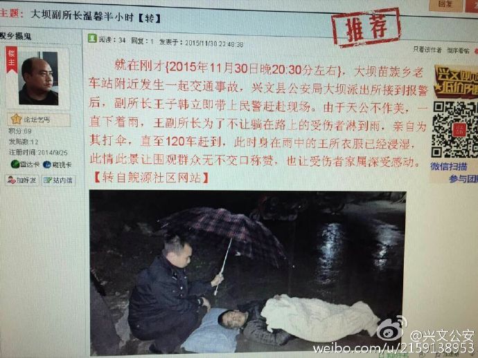 民警雨中为伤者撑伞半小时 意外“走红”(高清组图)