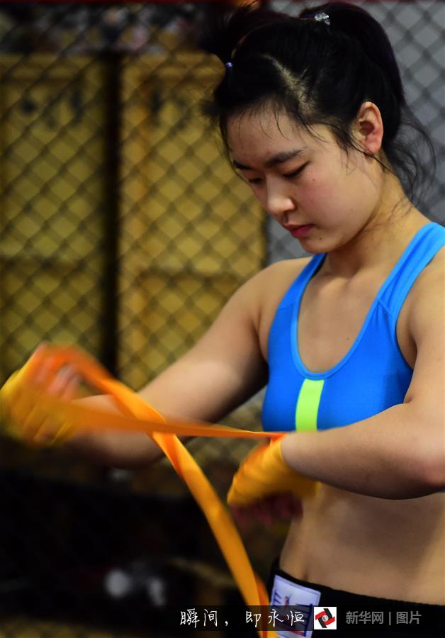 新华网长春12月16日电(记者王昊飞周万鹏)夜店嗨曲响起,斑斓的灯光扫过《街霸》涂鸦墙后聚在擂台上,18岁的董玲玉把长发束成冲天辫,戴上拳套与一名罗马尼亚籍女拳手展开对练。三天后,她们将在这里上演一场商业表演赛,这也将是吉林散打队员董玲玉职业生涯第一场不戴护具的比赛,虽为表演却也要靠格斗分出高下,她的“女拳霸”养成之路也将开启新的征程。