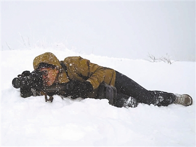 2015年11月20日,在河北省崇礼县一处雪场采访。