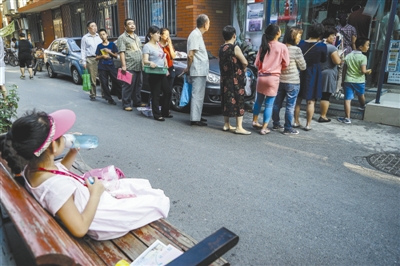 2015年9月6日,北京内务部街,为迎接新学期的到来,家长们在小学附近的商店排队购买文具。