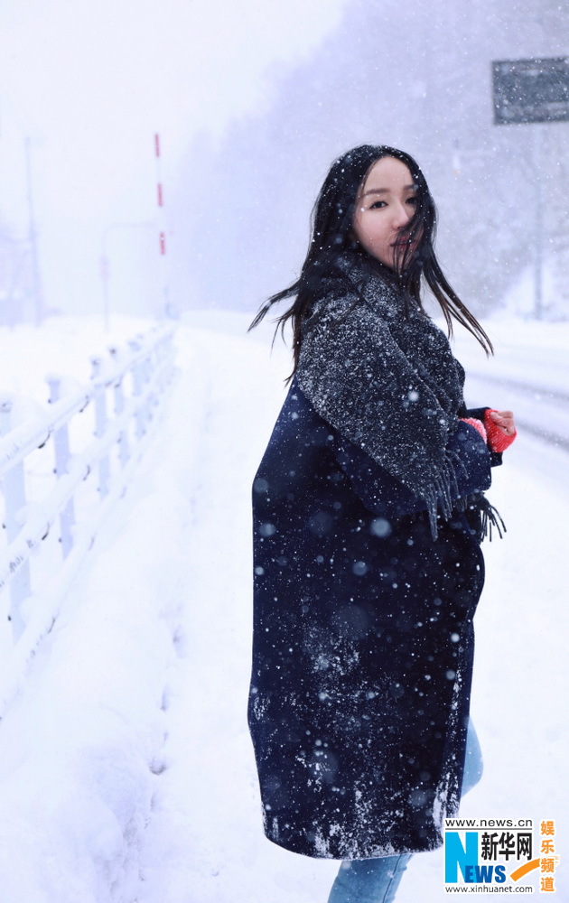 娄艺潇雪地玩耍拍大片 灿笑动人侧颜静美(高清组图)