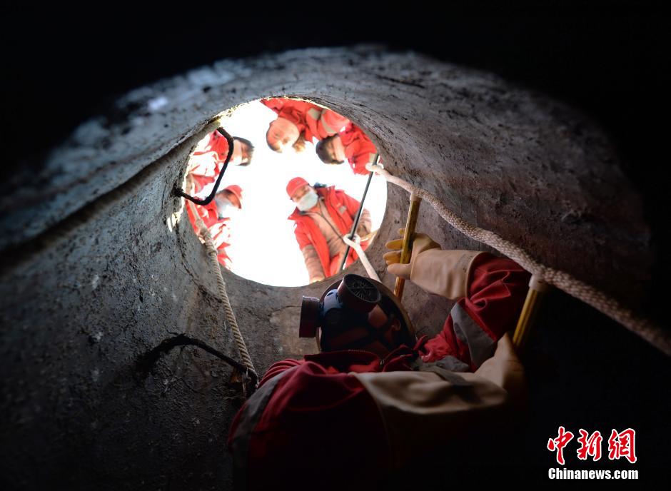 2月19日,位于河北邢台一处雨污管道清淤现场,“管道玫瑰”们正在忙碌工作着。图为女工吴迪爬下深井。这是一个由12名“70后、80后、90后”女工组成的城市雨污管道排水班,她们以女性特有的细腻和韧劲,完成着与她们的美丽外表并不相符的工作。这群被当地市民誉为“管道玫瑰”的女工们,担负着市管街道的4300余座检查井、3400余座收水井和近18万米雨污管道的清挖疏通、维修养护任务。