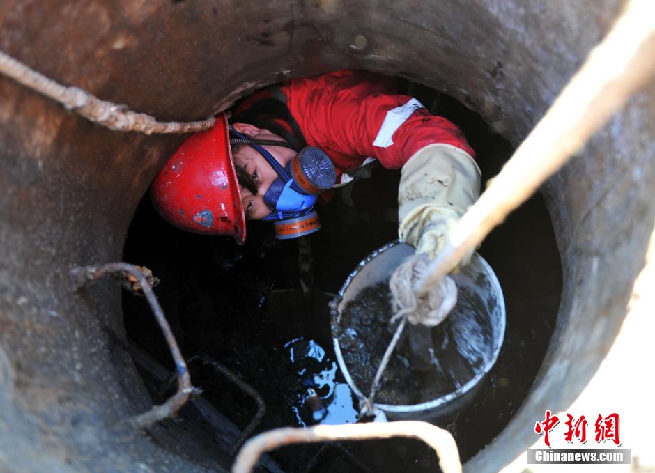 2月19日,位于河北邢台一处雨污管道清淤现场,“管道玫瑰”们正在忙碌工作着。图为一桶桶污泥被女工清理出来。这是一个由12名“70后、80后、90后”女工组成的城市雨污管道排水班,她们以女性特有的细腻和韧劲,完成着与她们的美丽外表并不相符的工作。这群被当地市民誉为“管道玫瑰”的女工们,担负着市管街道的4300余座检查井、3400余座收水井和近18万米雨污管道的清挖疏通、维修养护任务。。