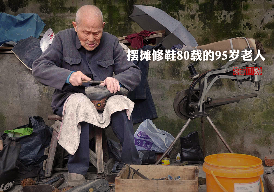 在福州仓山区程埔路的一棵大榕树下,王老伯正眯着眼睛专心补鞋。结满茧子的双手托着鞋子,殊不知王老伯已是95岁高龄,在这儿修鞋也超过了80个年头。王老伯是地地道道的福州人,自打十多岁起从乡下来到程埔头一带当学徒后,就一直生活在这里,以补鞋修鞋为生,到如今已修了80多年的鞋。 张斌 摄