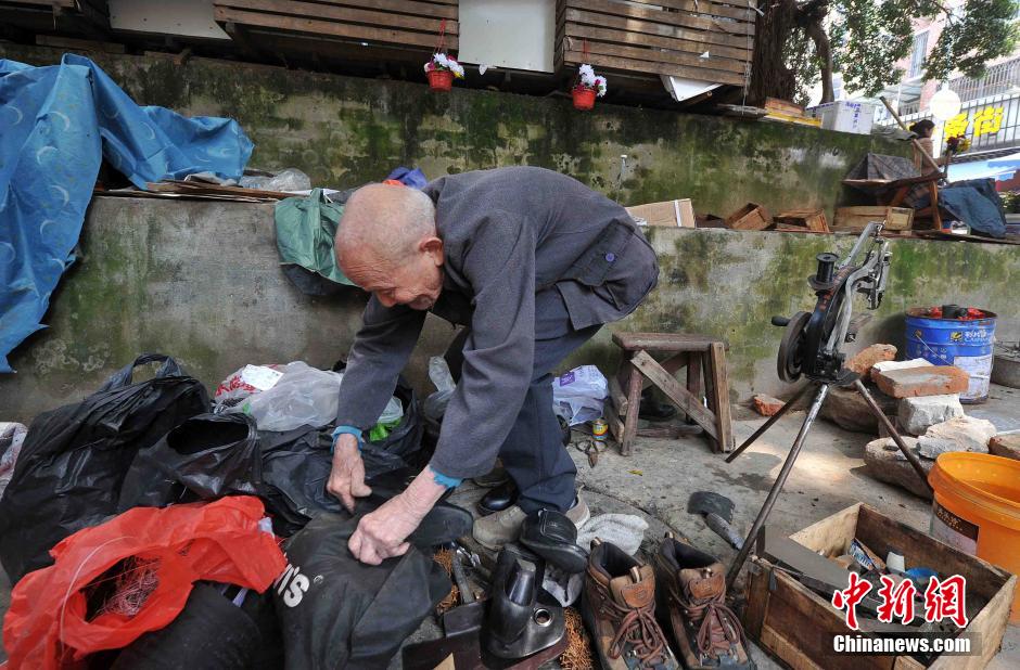 摆摊修鞋80载的95岁老人 不用眼镜能穿针引线(高清组图)