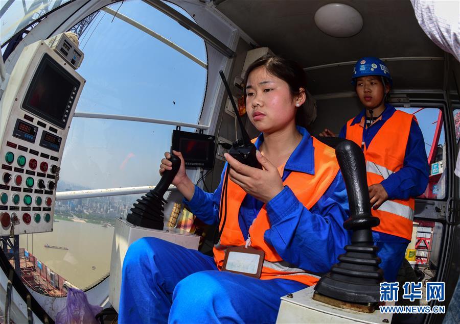 4月28日,卢有珍(右)在等待表姐肖金花操作结束以接班。在武汉绿地中心的建设工地上,有一对来自湖北省麻城市的表姐妹,她们在数百米的高空,操纵着亚洲房建领域最大的动臂塔吊。她们就是中建三局二公司年轻的塔吊操作工卢有珍和肖金花。卢有珍、肖金花姐妹俩都出生于1989年,还不到30岁,却已经操作塔吊3年多了。在设计高度636米的武汉绿地中心开工后,姐妹俩被派到这里,共同负责一台动臂塔吊的操作,互相轮班。随着大楼一天天“长高”,姐妹俩工作的“海拔”也一天比一天高,目前已离地300多米了,可谓身处“云端”开塔吊。长期从事高空作业,不仅要有很强的心理素质,还要克服长时间一个人在“云端”的寂寞,以及风吹日晒的考验。但姐妹俩说:“能见证和参与这座城市一步一步的变化,是我们的幸运。” 新华社记者 程敏 摄