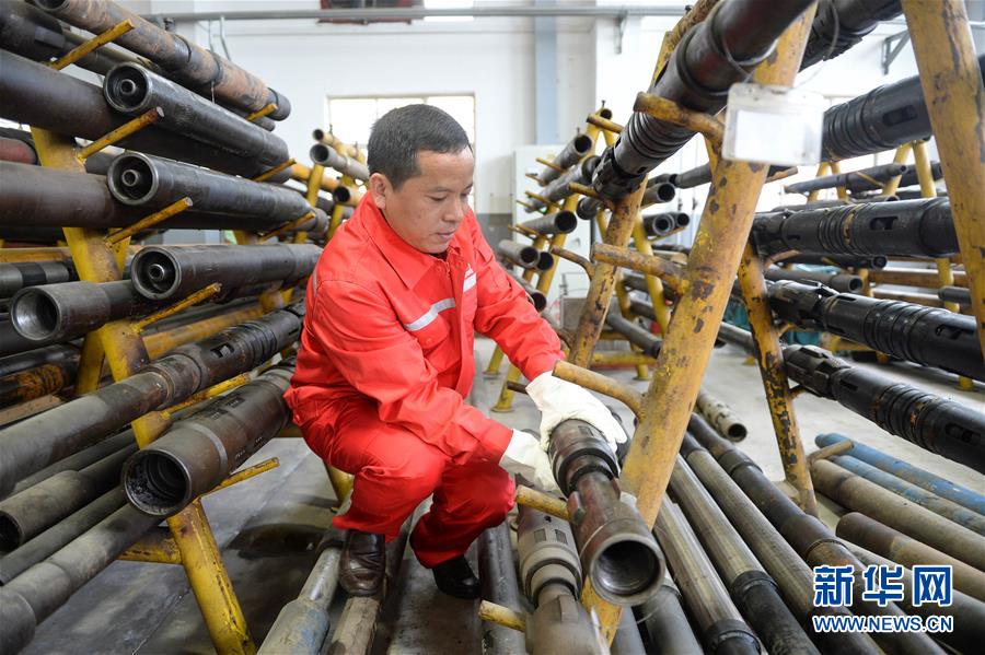 4月26日,在中石化江苏油田,田明在对工具进行检修保养。