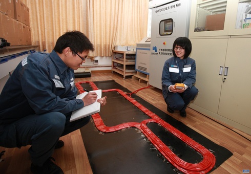 祝文姬(右)和同事在检查电动汽车无线充/供电试验车道运行情况(资料照片)。 从硕士到博士,从象牙塔里的“理论突破”到无线供电系统的“实战突围”……进入南方电网广西电科院4年时间的祝文姬,用19件国家发明专利、30余件实用新型专利、6项计算机软件著作权,率领团队开创了全球电动汽车无线供电新时代。 新华社发(南方电网广西电科院供图)