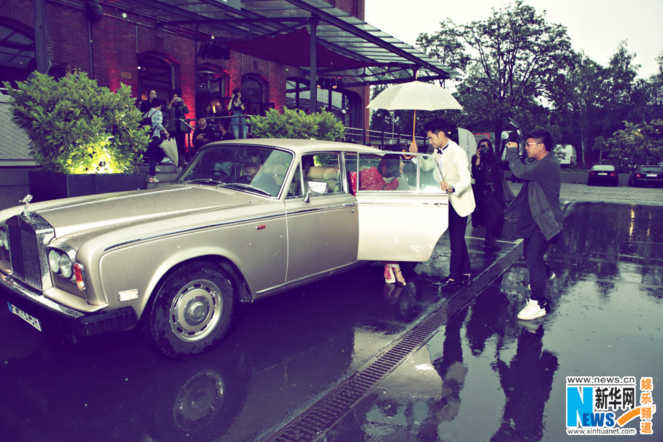 袁弘法兰克福为张歆艺开生日趴 雨中幸福撑伞