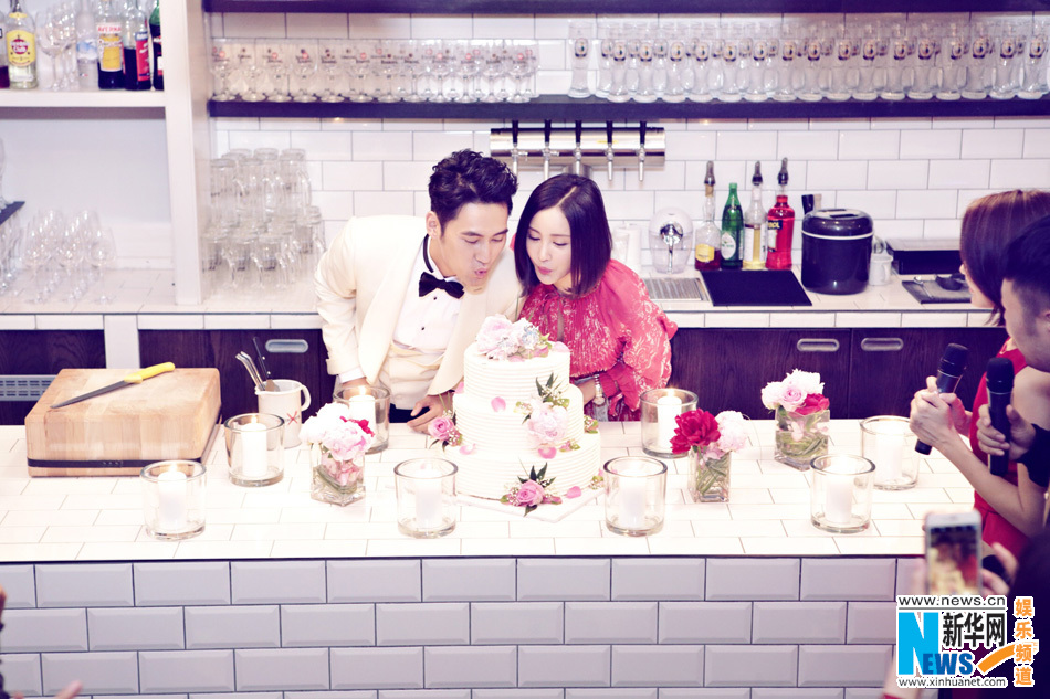 袁弘法兰克福为张歆艺开生日趴 雨中幸福撑伞