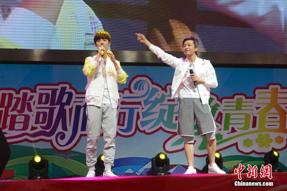 鹿晗、邓超现身呼和浩特一中学 为高考学子加油