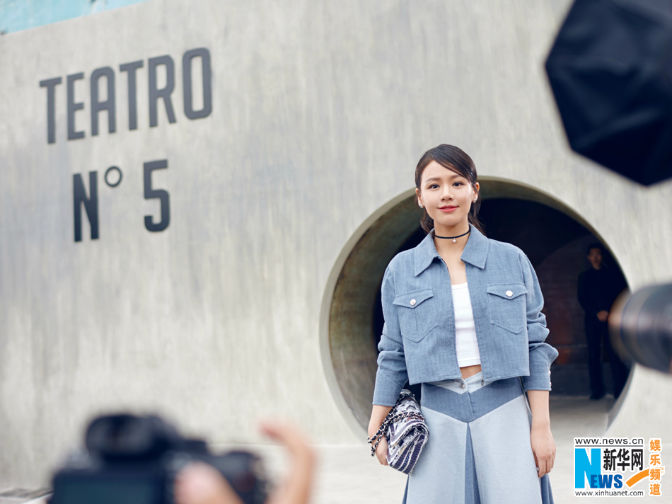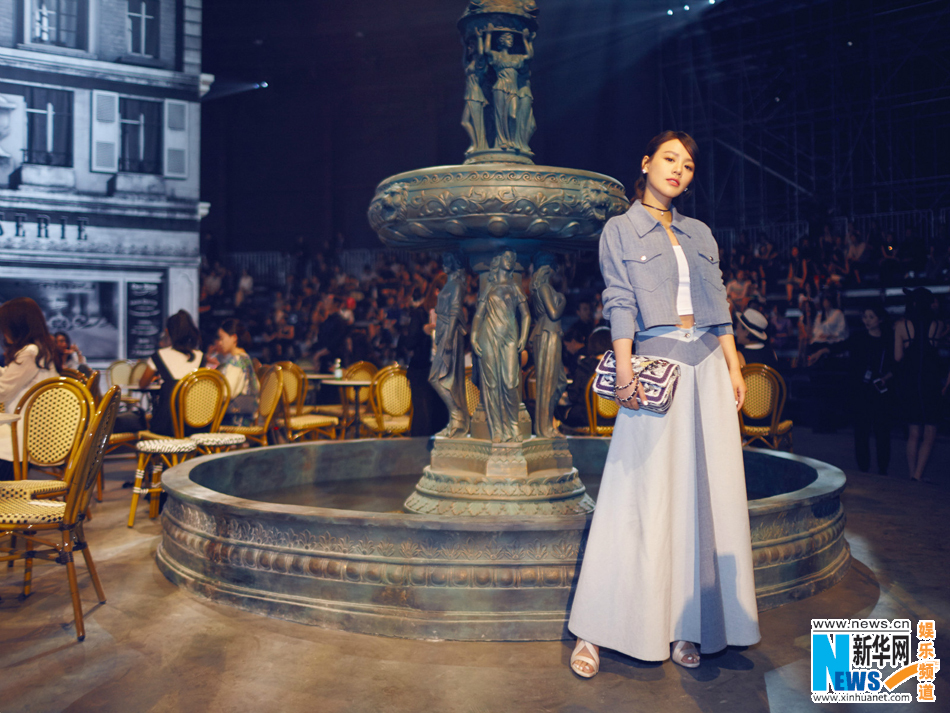 马思纯出席时尚活动 牛仔长裙尽展青春活力