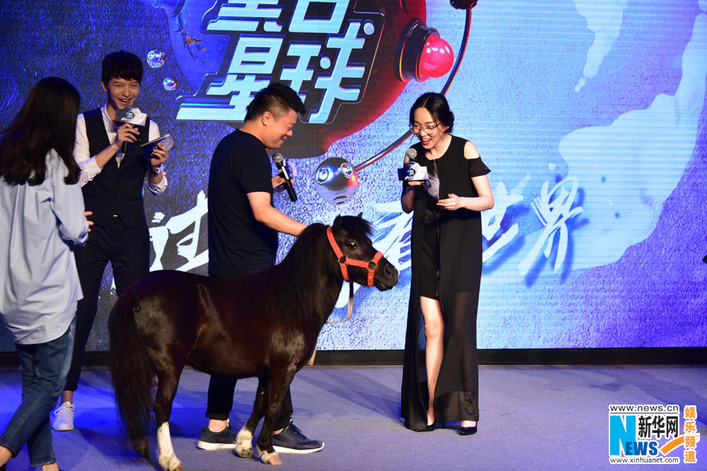 6月21日,由优酷携手米未传媒共同推出的网生自制综艺节目《黑白星球》在京召开题为“倒过来看世界”的节目发布会。在发布会上,米未传媒创始人兼CEO马东,与独家播出平台、优酷网高级副总裁王平一起,向米未旗下艺人同时也是《黑白星球》主持人的马薇薇送上一匹可爱的“微微马”,预祝马薇薇新节目开播“马到成功”。