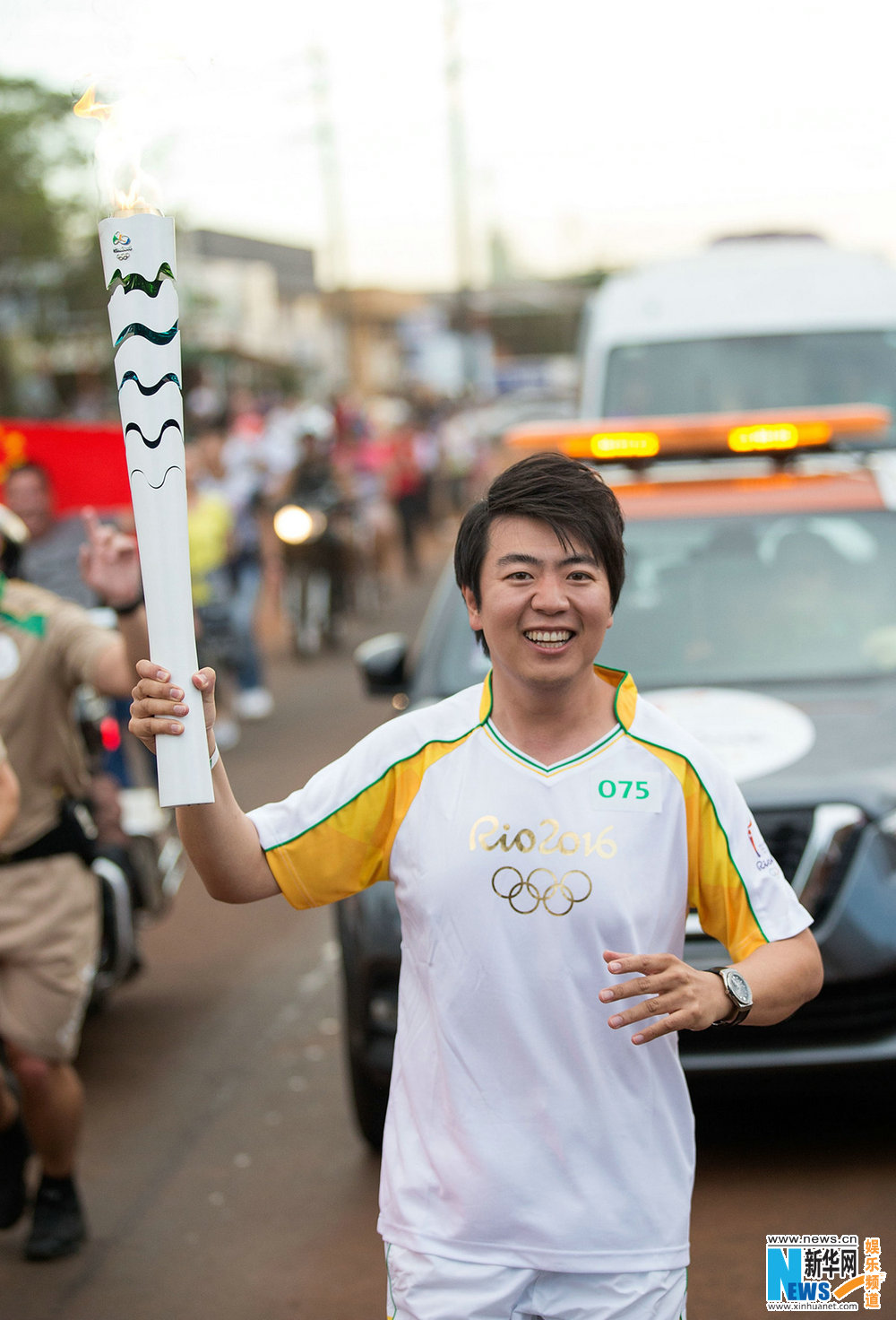 巴西伊瓜苏当地时间6月30日下午,郎朗身着运动装,手持里约奥运会火炬,出现在巴西伊瓜苏奥运圣火传递现场。郎朗对奥运火炬传递并不陌生,他此次是继2008北京奥运会、2012伦敦奥运会之后,第三次参加奥运圣火传递。郎朗是第75棒火炬手,他跑步的速度很快,还不时与周围的民众互动、拍照。而就在火炬传递当天的上午,郎朗还在著名的伊瓜苏大瀑布前,为巴西当地民众演奏了《此刻是金》、南美风格的《TICO TICO》及中国作品《黄河》选段,为里约奥运会助阵,这也是首场在伊瓜苏大瀑布前举办的音乐会。 郎朗接受采访时说:“音乐和体育同样都是跨越了地域、文化、年龄的沟通平台。我很高兴能用奥运火炬和钢琴,让大家感受到人类的对美好对善良的追求所带来的感动。” 据悉,郎朗将于8月份再次来到巴西,并为里约奥运会先上一场音乐会。