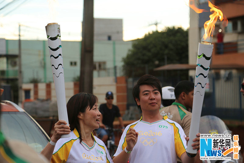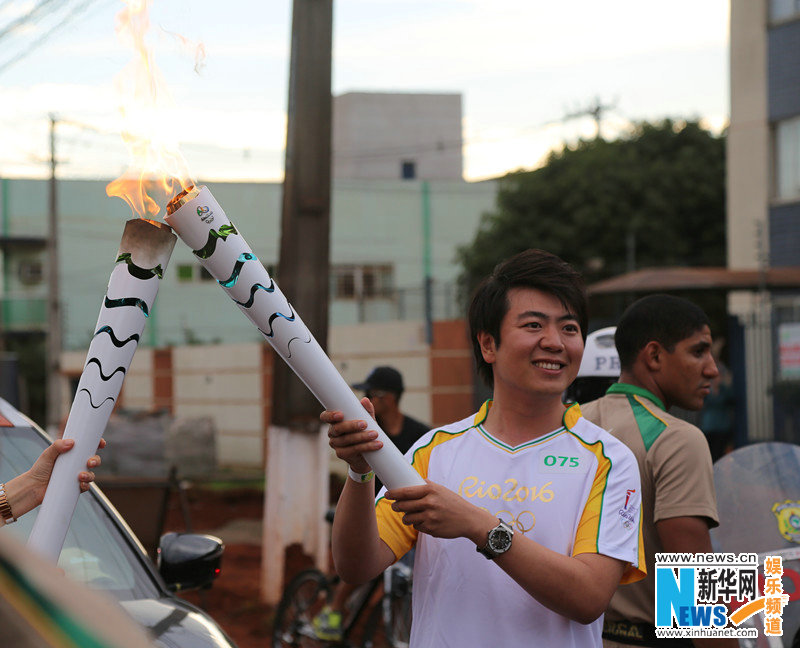 郎朗巴西传递奥运圣火 大瀑布前弹钢琴