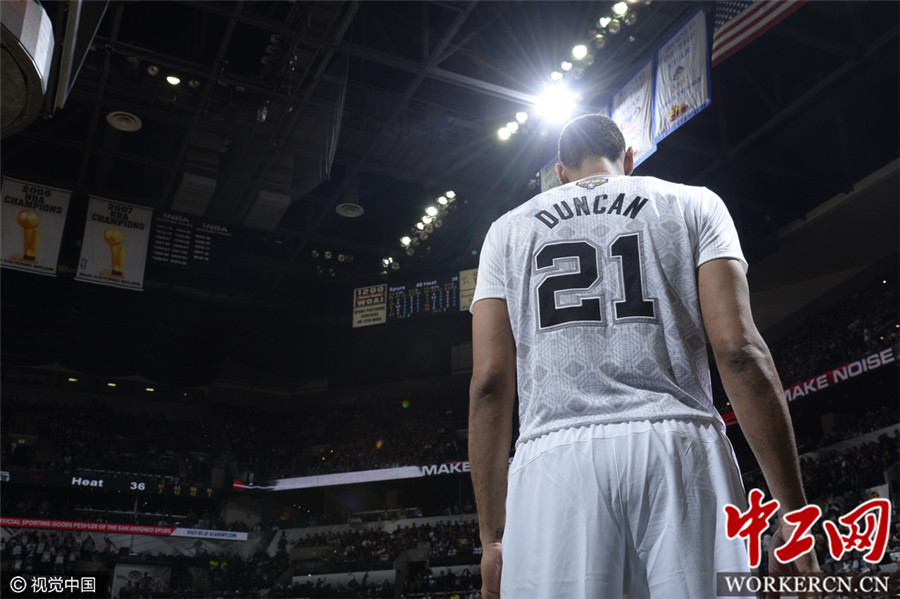 蒂姆-邓肯在今天正式宣布退役,19年职业生涯就此划上句号,虽然外界对此早有准备,但消息公布后还是让人感叹不已,马刺队友们在推特上向邓肯致敬。2014年3月6日,美国,13/14NBA常规赛,迈阿密热火Vs圣安东尼奥马刺。D. Clarke Evans/Getty Images/视觉中国供图