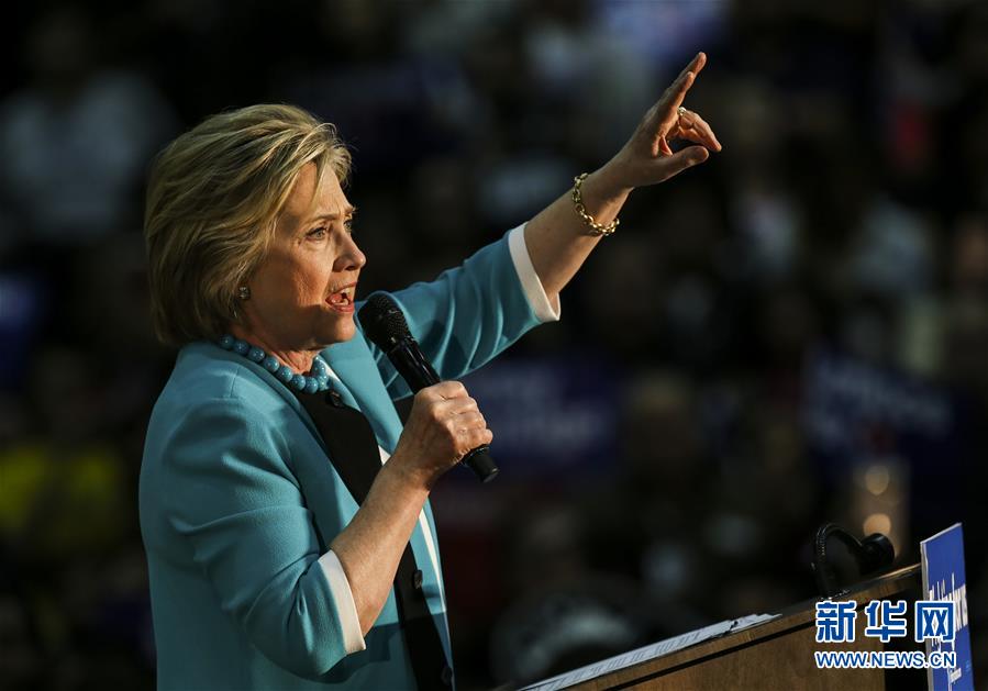 希拉里·克林顿7月26日正式获得美国总统选举民主党候选人提名。这是5月5日希拉里在美国加利福尼亚州东洛杉矶大学参加竞选活动时的资料照片。 新华社发(赵汉荣摄)