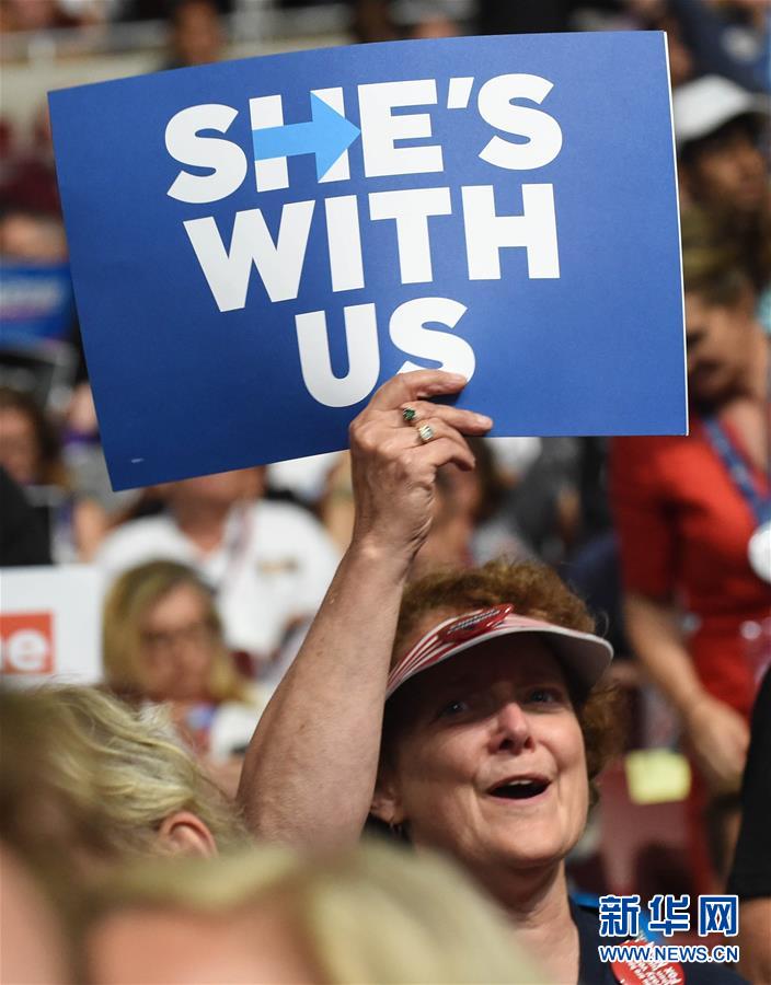 7月26日,在美国宾夕法尼亚州费城,会场内的希拉里支持者在计票阶段欢呼。 希拉里·克林顿26日正式获得美国总统选举民主党候选人提名。新华社记者 鲍丹丹 摄