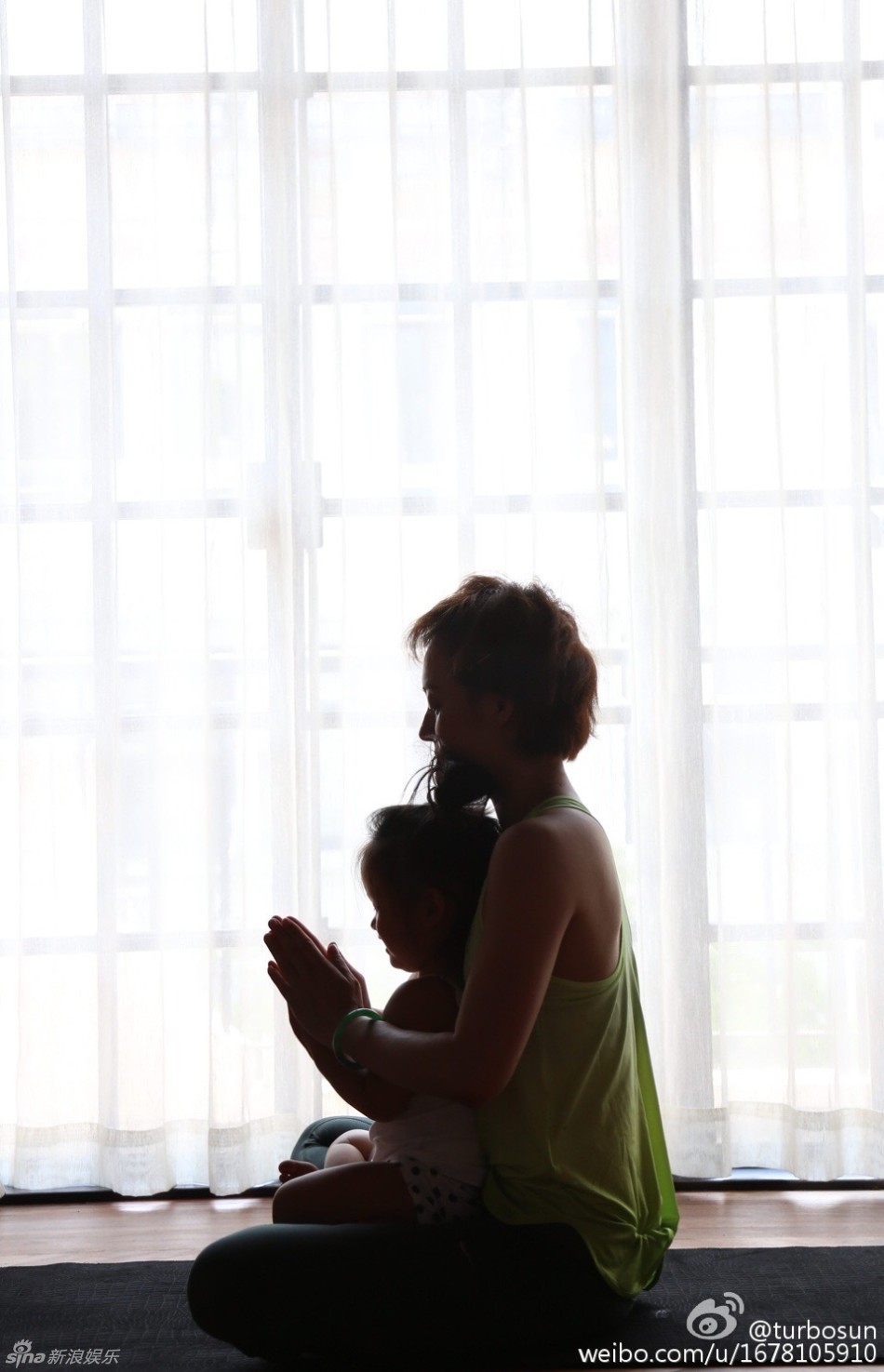 组图:小花妹妹陪孙俪练瑜伽 坐在怀中画面温馨