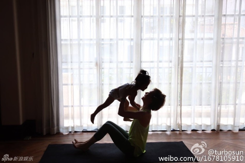 组图:小花妹妹陪孙俪练瑜伽 坐在怀中画面温馨
