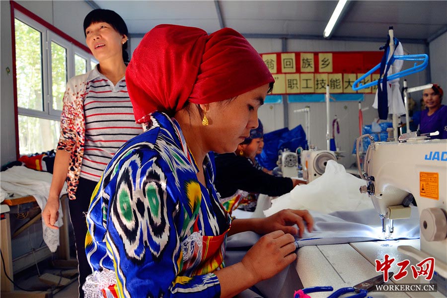 2012年,谷旭梅带领12名徒弟接下了加工本乡阿勒推小学的400套校服的任务,最终实现了一些盈利。“只有自己富起来了,才能帮助更多的人!”这次尝试使她看到了创业、技能培训所带来的益处。