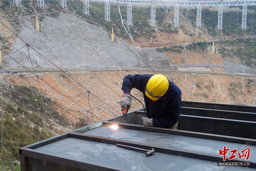 编者:500米口径球面射电望远镜(“天眼”)落成启用,离不开所有科学家和建设者的智慧、辛勤和汗水。在群山环绕的贵州黔南州平塘县“大窝凼”,地势险峻、山崖陡峭,坡度都在70度以上,根本没有可操作的施工作业面,低头,是悬崖;抬头,是峭壁。就在这样的环境中,建设者们学会了“飞檐走壁”,承受着雨淋日晒、风餐露宿,最终建成了具有我国自主知识产权、世界最大单口径、最灵敏的射电望远镜。这是所有劳动者汗水的结晶。今天我们刊发一组关于中建二局中国科学院国家天文台项目部工人的劳动场景照片,对“天眼”建成的艰辛和不易可见一斑。