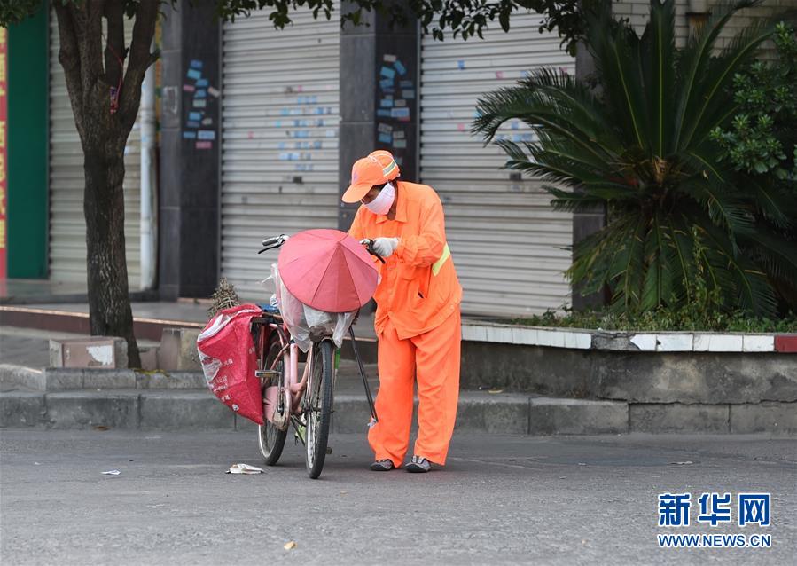 10月2日,环卫工人在广西柳州市航生路上工作。国庆长假期间,不少劳动者依然坚守岗位,默默奉献。新华社记者 黄孝邦 摄