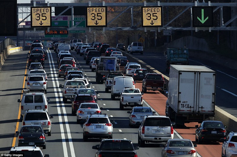 弗吉尼亚州Dunn Loring市,人们赶着在感恩节前回家,路上车流移动缓慢。
