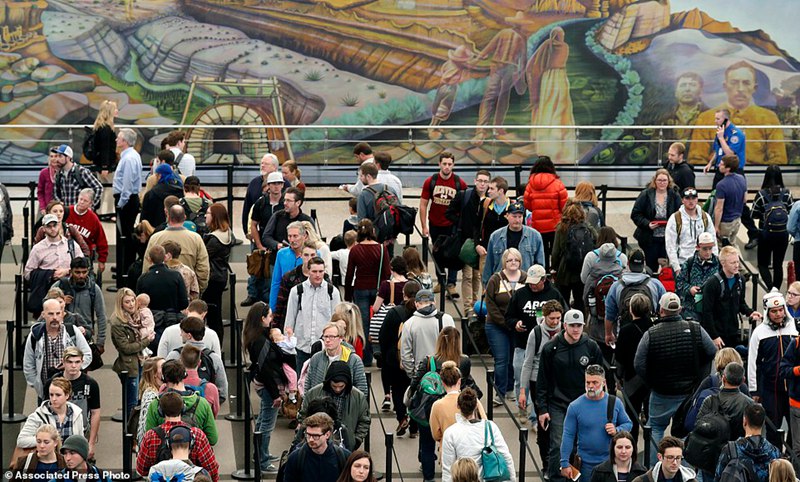 丹佛国际机场,排队等候安检的人们。