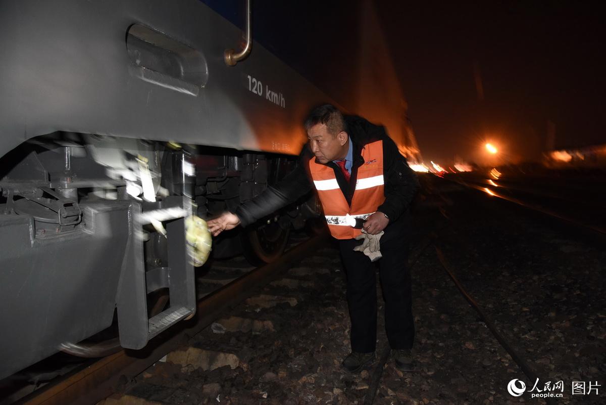 2017年2月3日,司机孙日峰检查机车走行部。