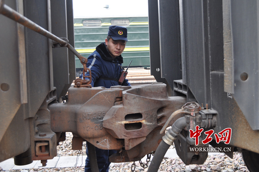 临汾站是南同蒲线上的一个客货运一等站,也是办理列车接发、解编、货物装卸等技术作业的区段站,日均编组列车18列430辆,解体列车10列260辆。春运期间,临汾站加开了3趟临客,加上日常图定开行的客车,于涛一班要负责至少7趟客、货车进出整备库和专用线的作业,暴走在客车检修库、专用线和站台间,来来回回不少于8公里。