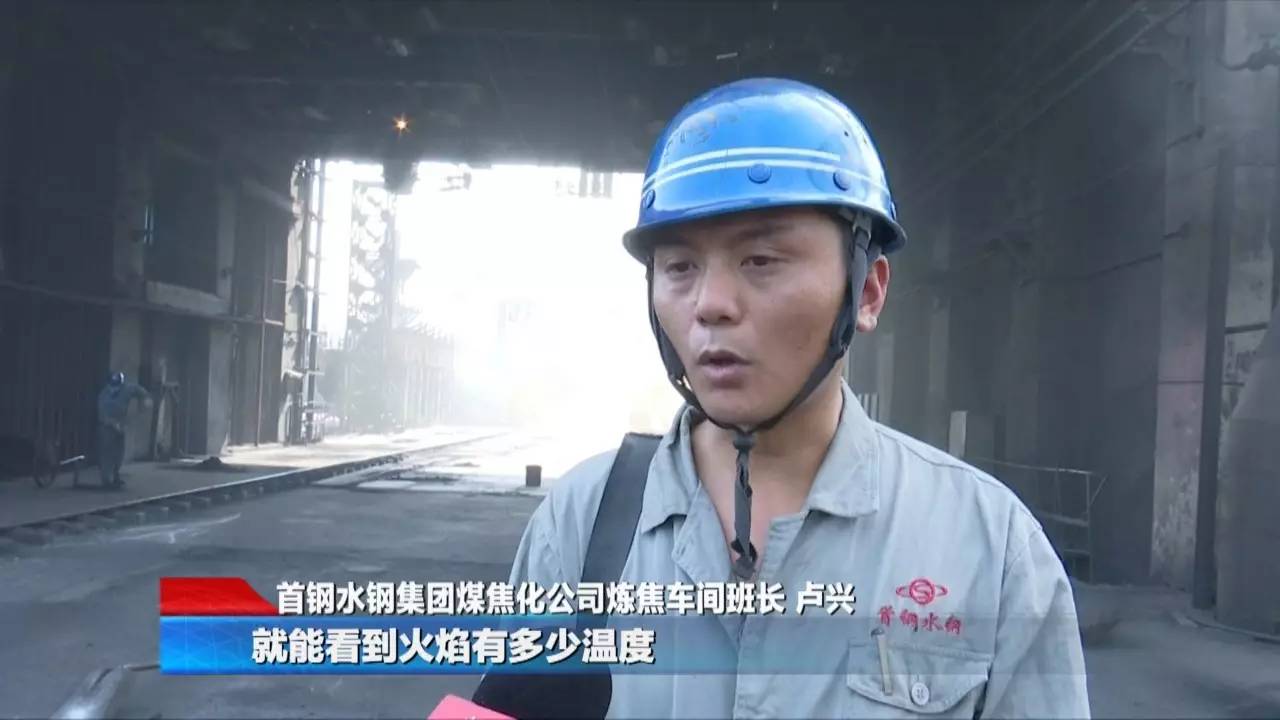 首钢水钢集团煤焦化公司炼焦车间班长 卢兴:胡亮学师傅打开火盖以后就能看到火焰有多少温度,看到火的燃烧情况,能知道焦炉的焦炭成熟情况,我们很佩服他。