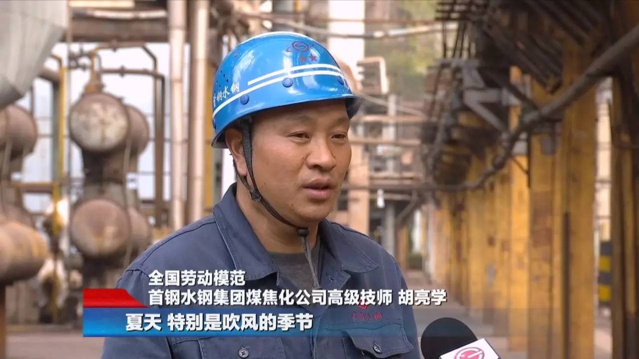 全国劳动模范 首钢水钢集团煤焦化公司焦炉调温高级技师 胡亮学:夏天特别是吹风的季节,炉顶上的温度应该说在80度左右,我们基本上每天都要在上面重复性地五六个小时的工作。