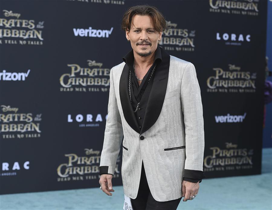 5月18日,在美国洛杉矶,演员约翰尼·德普参加影片《加勒比海盗5:死无对证》的首映式。《加勒比海盗5:死无对证》将于5月26日在美国上映。 新华社/美联