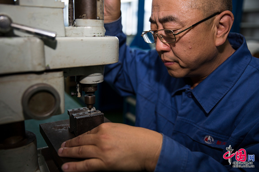 在近40年的国防军工产品生产加工历程中,贾岩以高超的手艺解决了多个型号产品装配难题,经手的产品多达十万件,始终保持“零废品”的记录 。中国网 董宁摄影