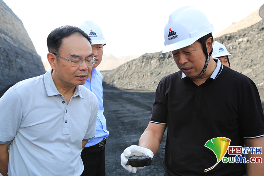 郭昭华(右一)在露天煤炭开采现场。本人供图