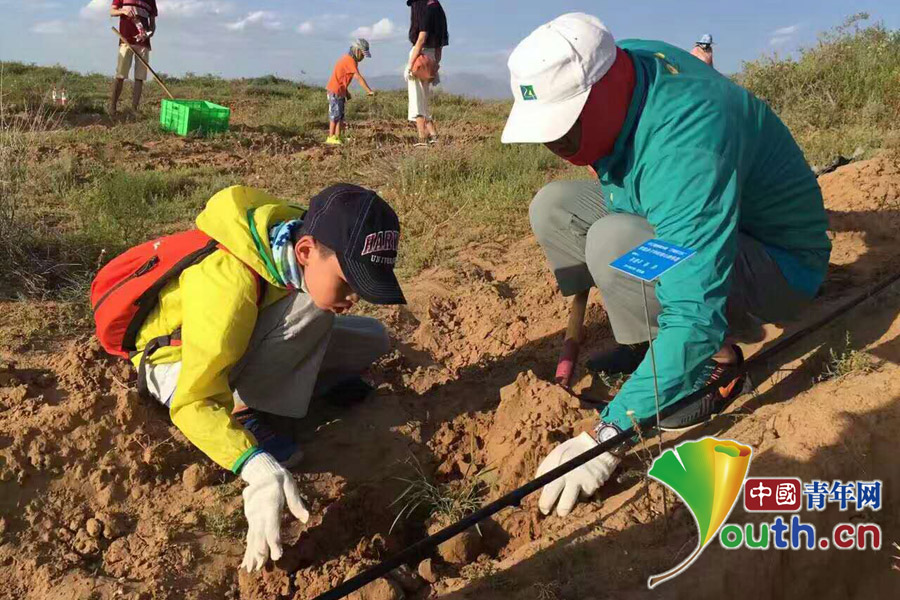2016年,广州外国语学校的学生和家长不远千里来到阿拉善参加“种树植心”公益活动,孩子们上了生动而又难忘的一课。除了学校集体组织,也有一些社会爱心人士的自愿加入,一个大庆男孩和他的父亲就是其中的两位。