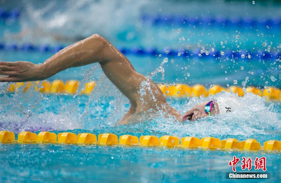 9月1日,天津全运会举行男子4x100米自由泳接力比赛,孙杨领衔的浙港联队最终不敌广东名将余贺新领衔的广东河南辽宁联队,屈居亚军。图为孙杨在比赛中。中新社记者 李卿 摄