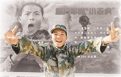 前段时间,温文鹏把自己与“明星灯箱”的合影发给亲友,还附上短信:“我一直崇拜自己的班长,一不小心我也成了‘训练之星’,你们大家一定没想到吧?”