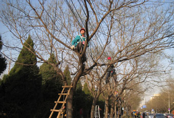 进入12月,正是绿化职工开始对京城树木进行冬季修剪的时节。和春季修剪不同,冬天的树木叶子落光了只剩枝杈,修剪的多是枯枝死杈,修剪后,树型会更好,春季长叶、开花都更漂亮。为了集中营养,让树木来年春季长势更好,也要遵循通透性原则,对树杈多的地方进行适度修剪。