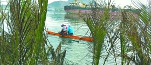 救援队员划船搜寻遇难者遗体