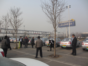在训练区,那些西装革履笔直地站在车前的就是教练。按照规定,他们必须要以这样的服务姿态来欢迎他即将要“一对一”培训的学员。