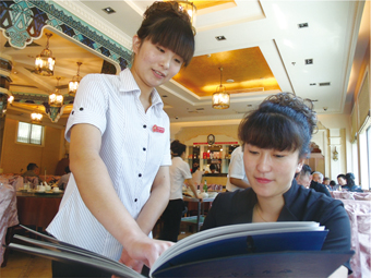今年21岁的吐鲁番餐厅回族服务员李献经常用以柔克刚的方式削减食客的“火气”。得到餐厅经理马忠和顾客们的一致认可。